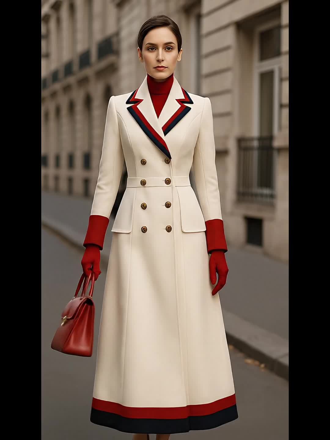 New High-End Fashion Versatile Stylish Goddess and Mature Tweed Coat with Color Blocking, French Style Metal Double-Breasted Long Overcoat, Casual Commuter Women's Outerwear