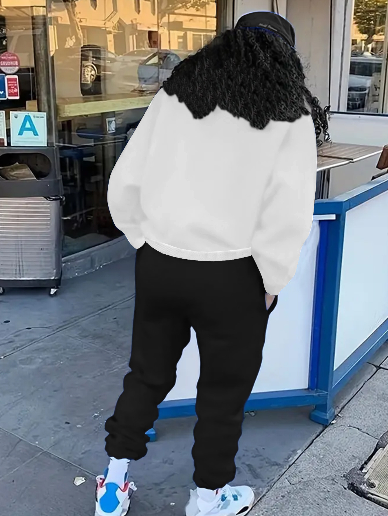 Women'S "Praise the Lord" Inspirational Letter Print Casual Sweatshirt and Jogger Set - Cozy Fall/Winter Outfit with Black Pants, White Sneakers, and Black Tote Bag, Inspirational Outfit | Crew Neck Top | Comfortable Fit