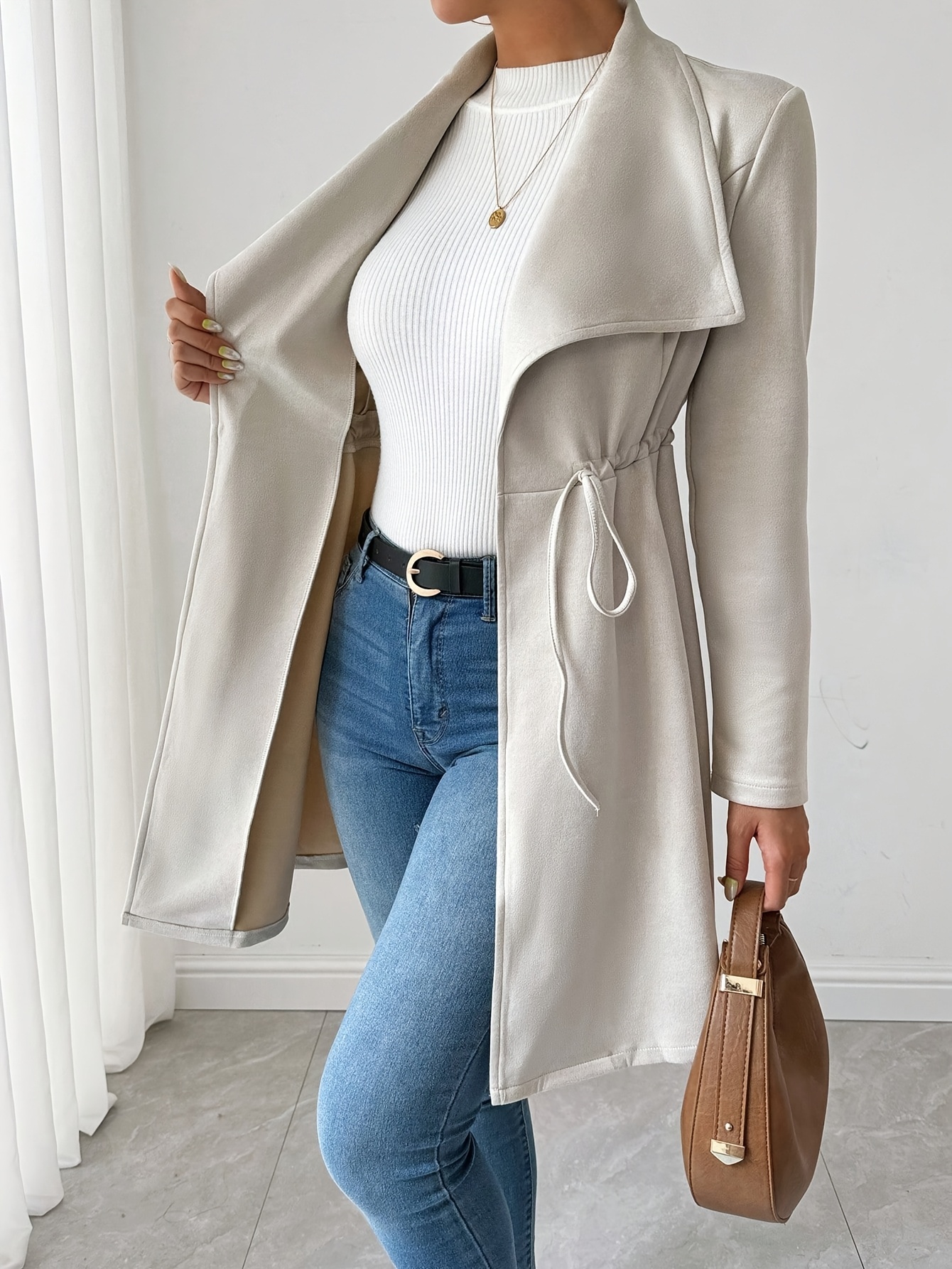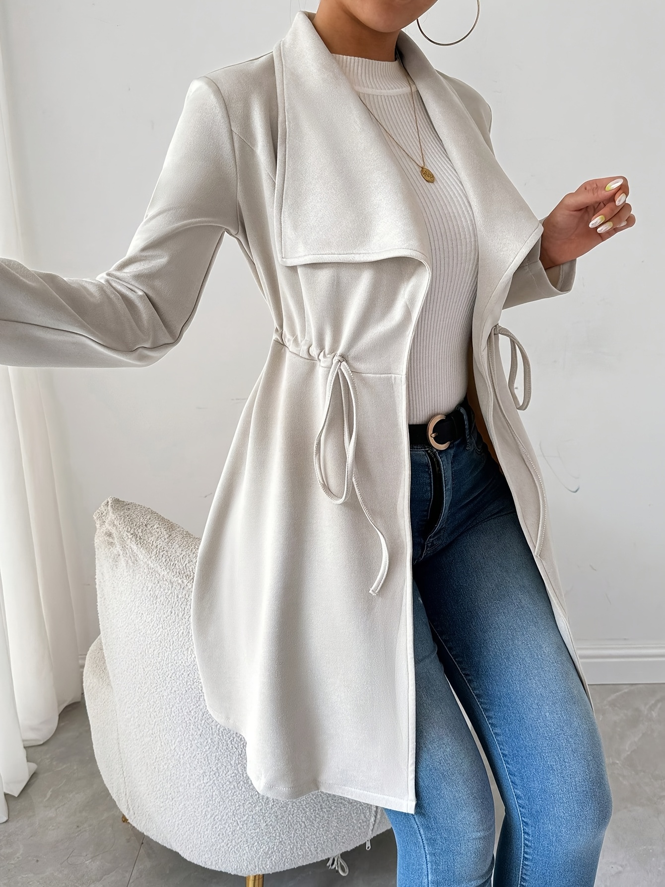 Women'S Stylish Beige Faux Fur Jacket with Long Sleeves - Casual, Elegant, and Versatile for Spring and Fall, Casual Outerwear | Elegant Casualwear | Faux Fur Jacket