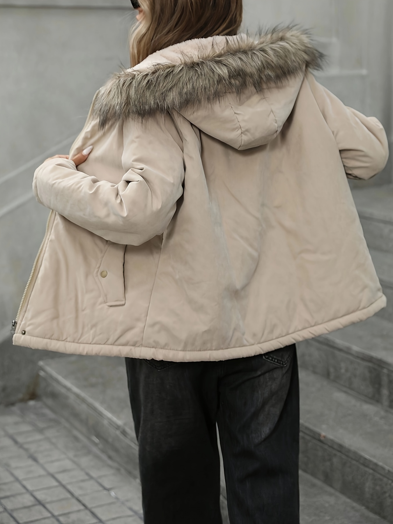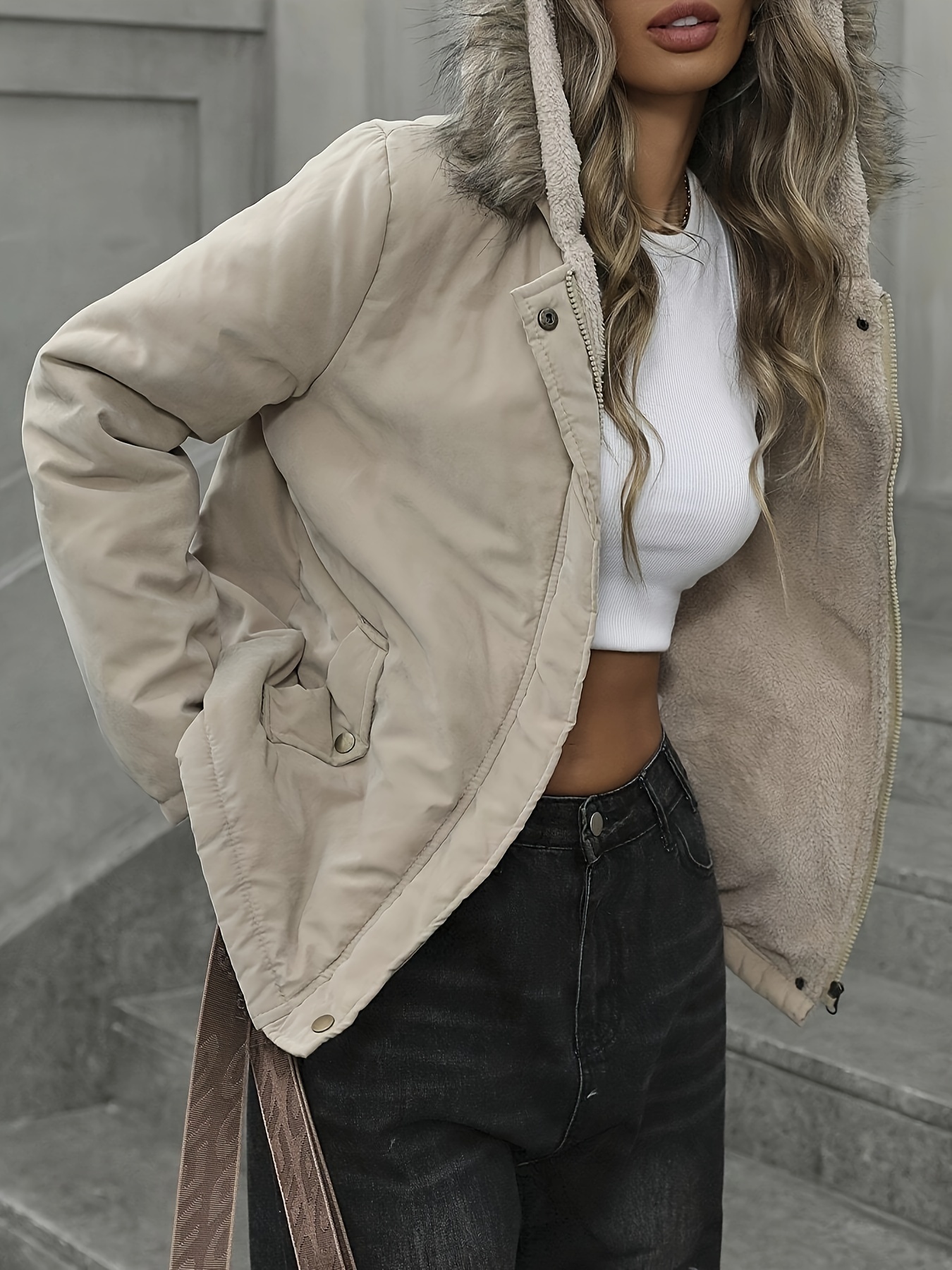 Women'S Winter Warm Hooded Jacket with Pockets - Casual Long Sleeve Coat, Solid Color, Non-Stretch Fabric, Regular Fit for Everyday Comfort, Winter Coats, Cold Weather Apparel, Durable Warmth, Functional Design, Quality Stitching, Cold Climate Wear