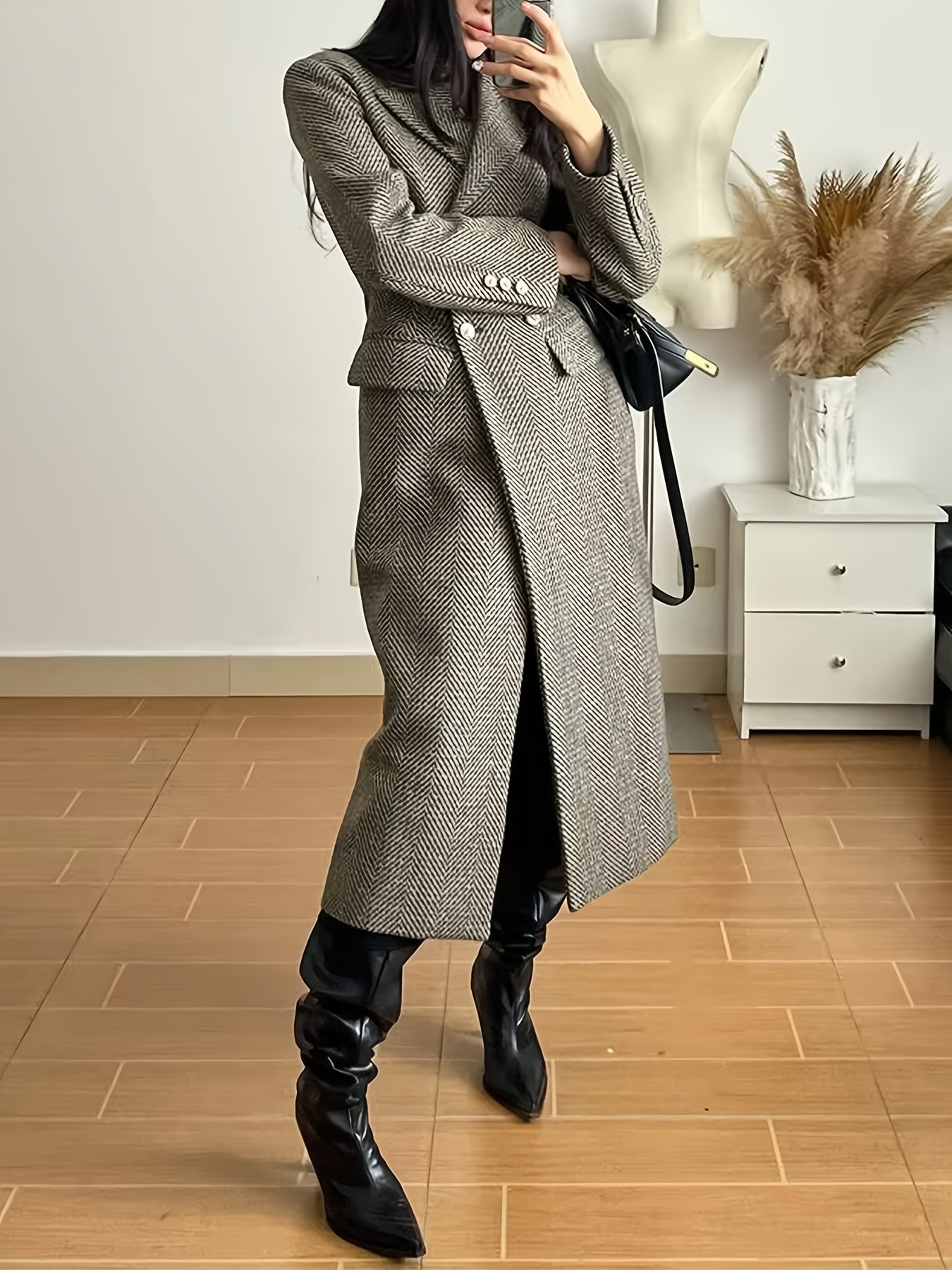 [Double Row Button Windbreaker Jacket] Temperament Double Row Button Long Windbreaker Jacket