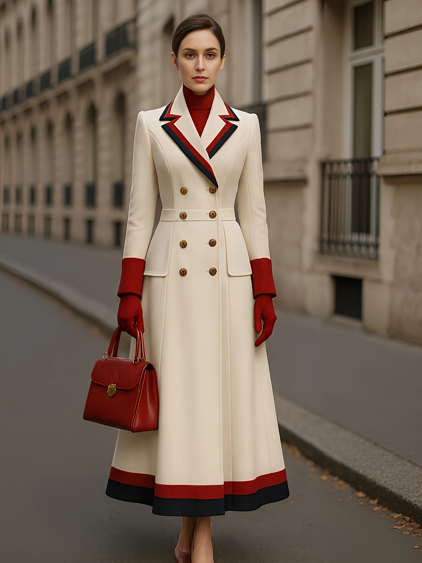 New High-End Fashion Versatile Stylish Goddess and Mature Tweed Coat with Color Blocking, French Style Metal Double-Breasted Long Overcoat, Casual Commuter Women's Outerwear