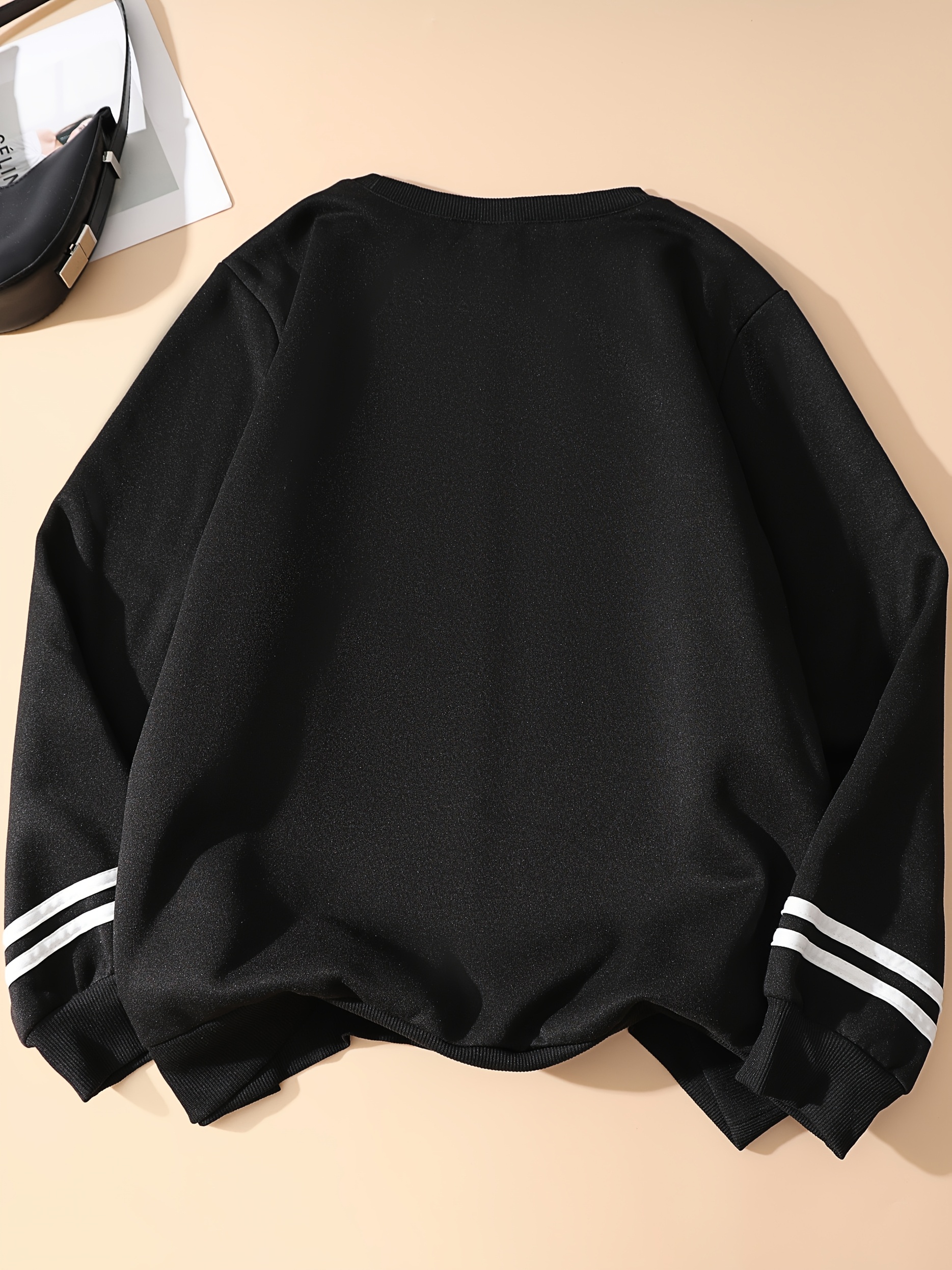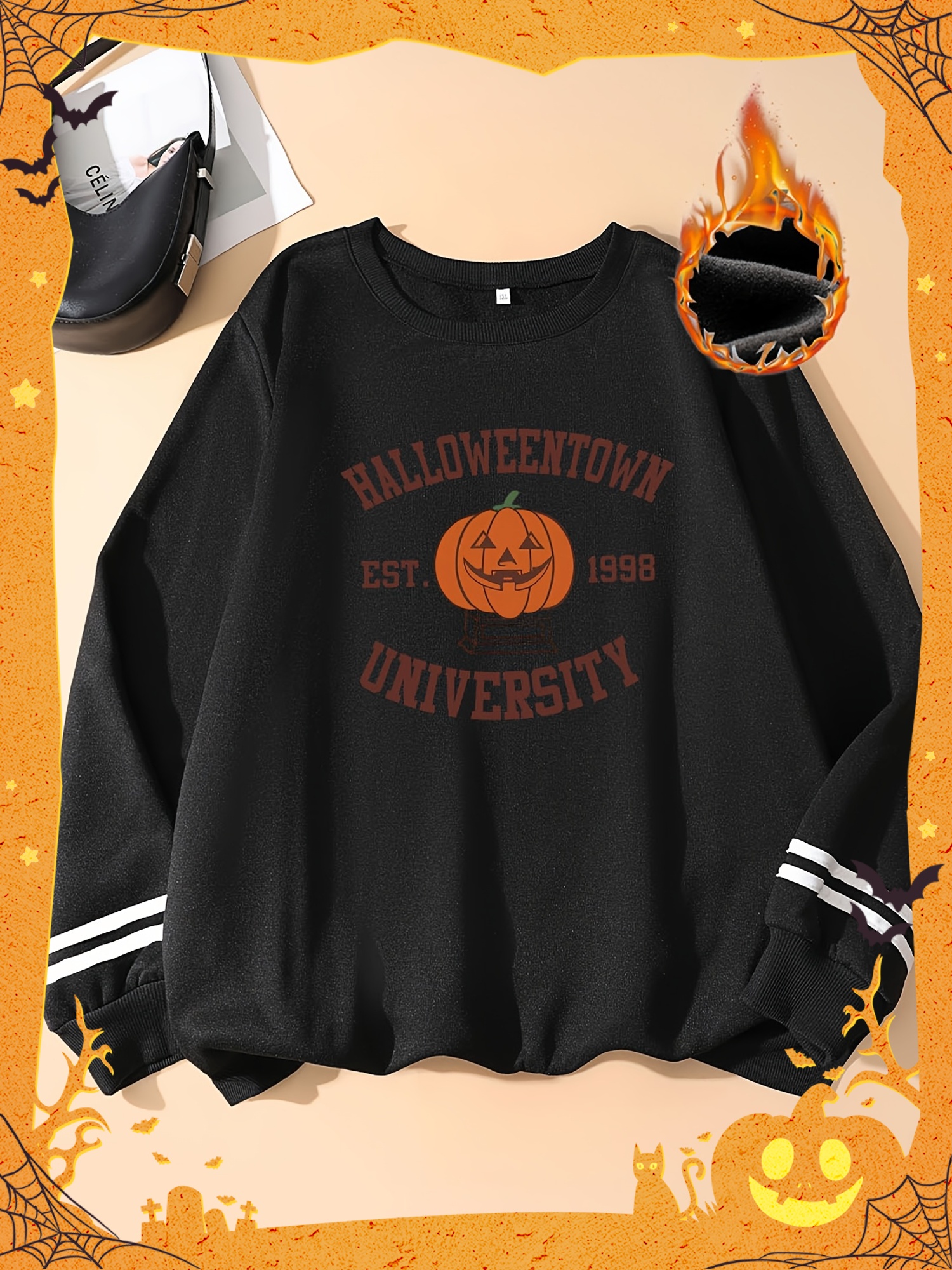 Plus Size - Halloween 2024 Women'S Plus Size Long Sleeve Crewneck Sweatshirt - "Halloween Town" Print, Black with Orange & White Stripes, Casual Fall/Winter Wear, 1-8x I (Ideal for Thanksgiving)