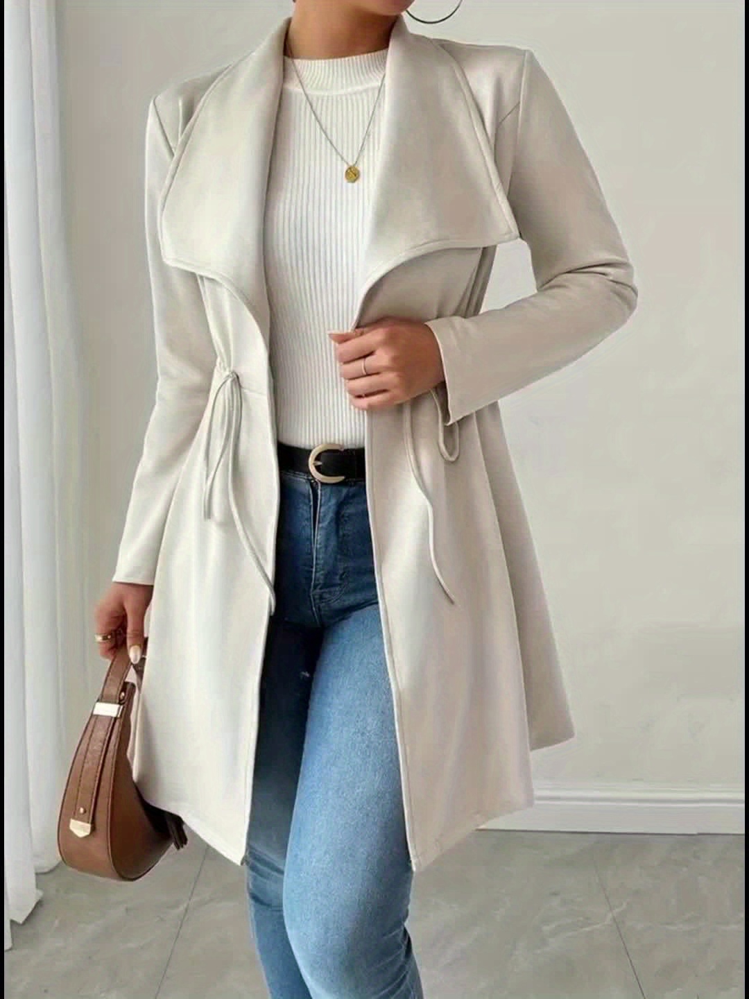 Women'S Stylish Beige Faux Fur Jacket with Long Sleeves - Casual, Elegant, and Versatile for Spring and Fall, Casual Outerwear | Elegant Casualwear | Faux Fur Jacket