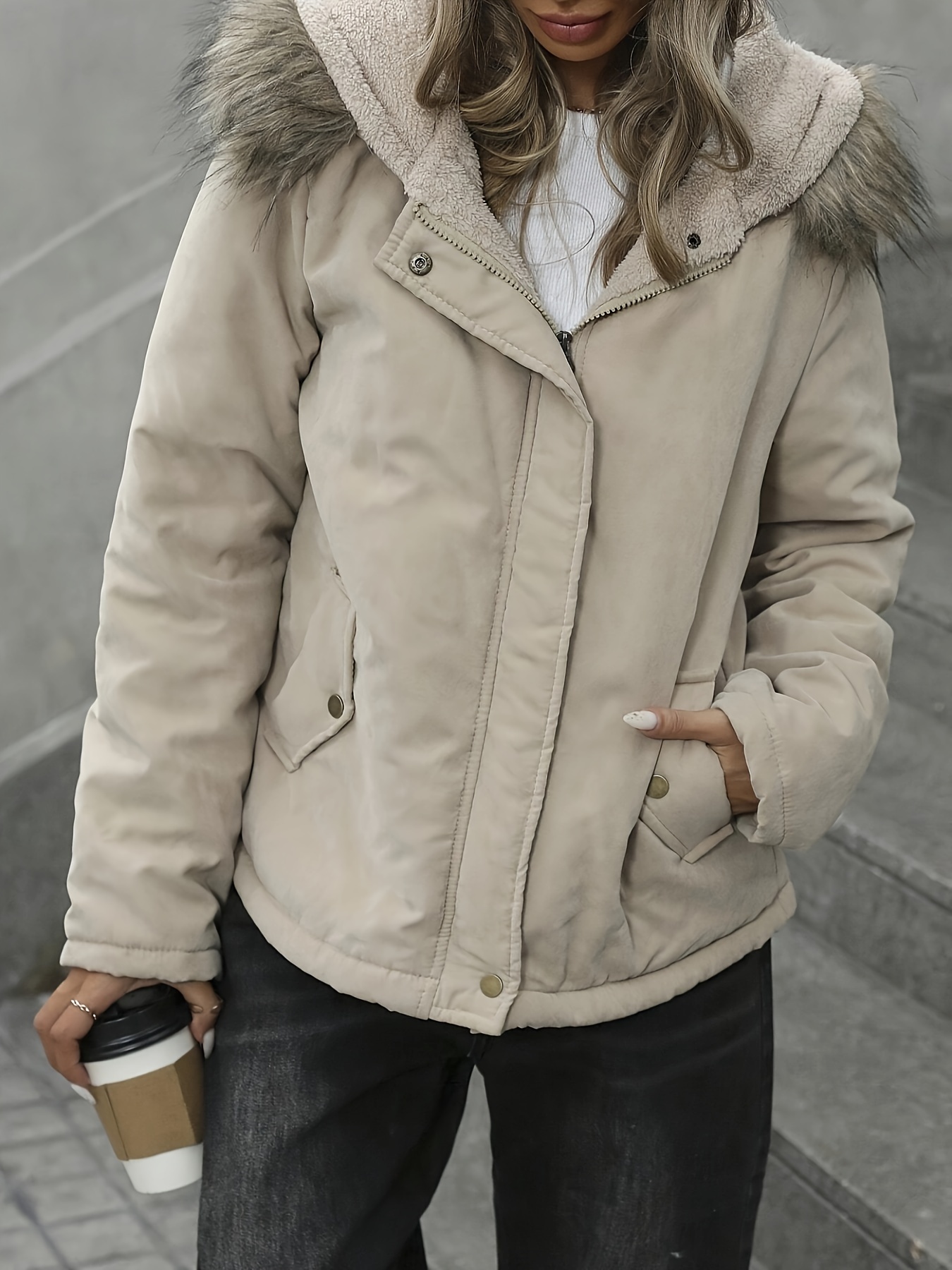 Women'S Winter Warm Hooded Jacket with Pockets - Casual Long Sleeve Coat, Solid Color, Non-Stretch Fabric, Regular Fit for Everyday Comfort, Winter Coats, Cold Weather Apparel, Durable Warmth, Functional Design, Quality Stitching, Cold Climate Wear