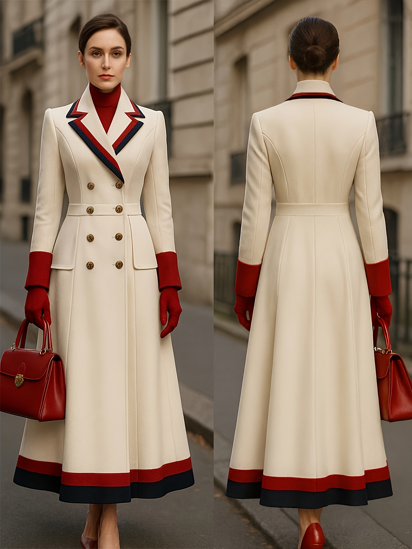 New High-End Fashion Versatile Stylish Goddess and Mature Tweed Coat with Color Blocking, French Style Metal Double-Breasted Long Overcoat, Casual Commuter Women's Outerwear