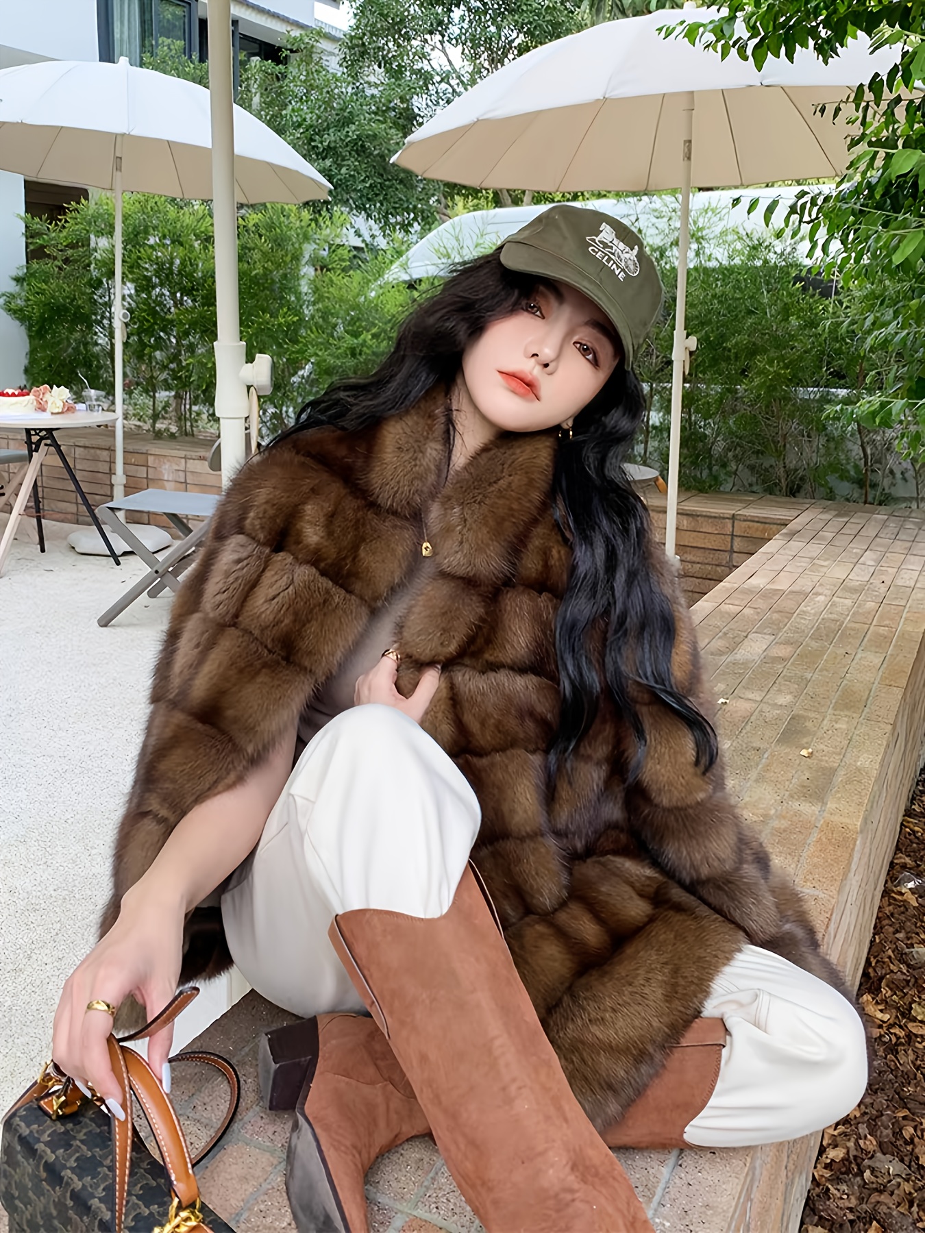Women'S Elegant Faux Fur Coat - Ultra-Soft Plush Winter Jacket with Contrast Trim, Long Sleeves & Flared Hem, Loose Fit for Casual & Formal Occasions, Fall/Winter Fashion Essential, Winter Outerwear, Sophisticated Style, Luxurious Texture