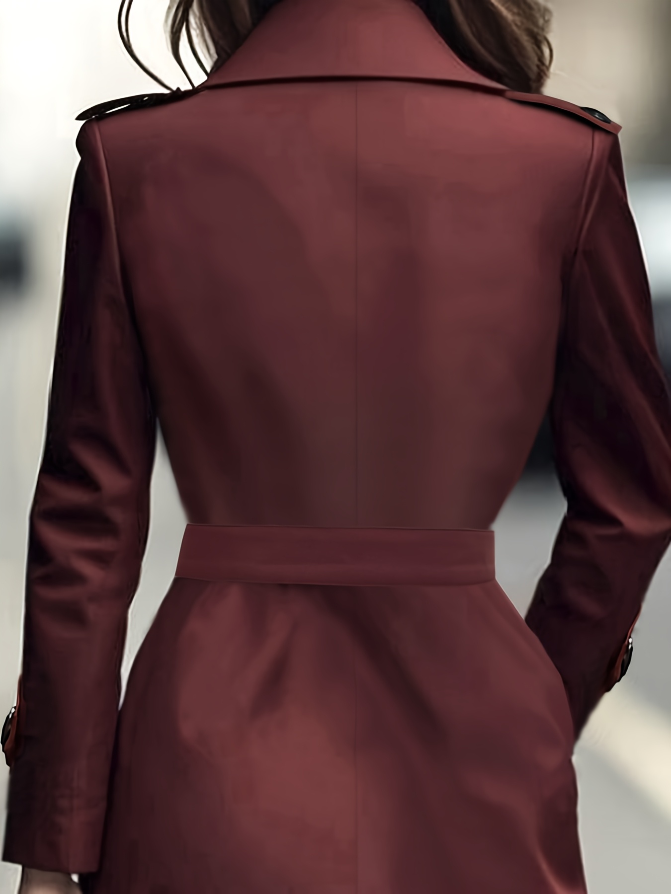 [Elegant Trench Coat] Elegant British Trench Coat | Women's Long Windbreaker with Belt, Non-Stretchy Formal & Everyday Outerwear, Machine Washable Fall Winter Coat in Burgundy/Red/Black - Special Line Collection